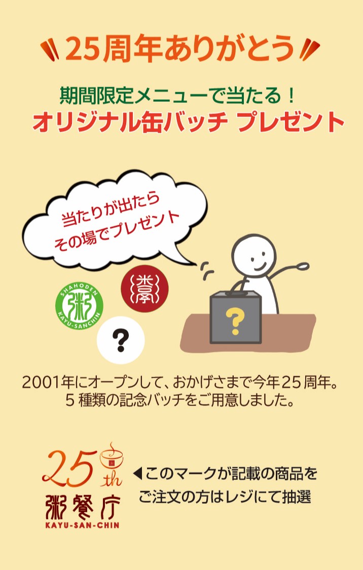 ☆粥餐庁は今年で25周年!☆