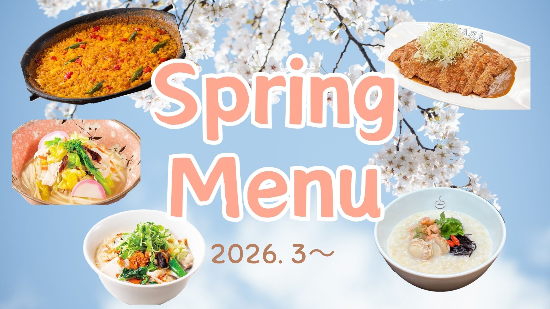 「粥餐庁」「西安餃子・西安健菜キッチン」「謝朋殿」、「つるこし」、「SPANISH DINING Rico」、「カレーハウス11イマサ」では、3月からの期間限定メニューがスタートしました!